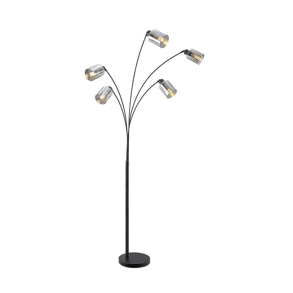 Stilren gulvlampe med flere justerbare lampe hoder som gir godt og fleksibelt lys. Det moderne designet med buede armer gjør lampen til et dekorativt blikkfang i stuen. Perfekt som stemnings- og leselys.