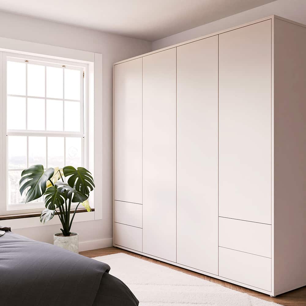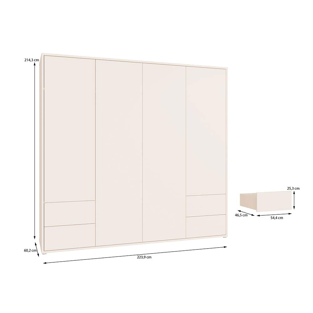 Garderobeskap 4 dørs med 4 skuffer sand