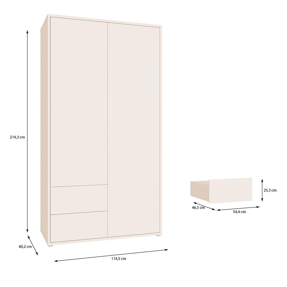 Garderobeskap L/R 2 dører og 2 skuffer sand