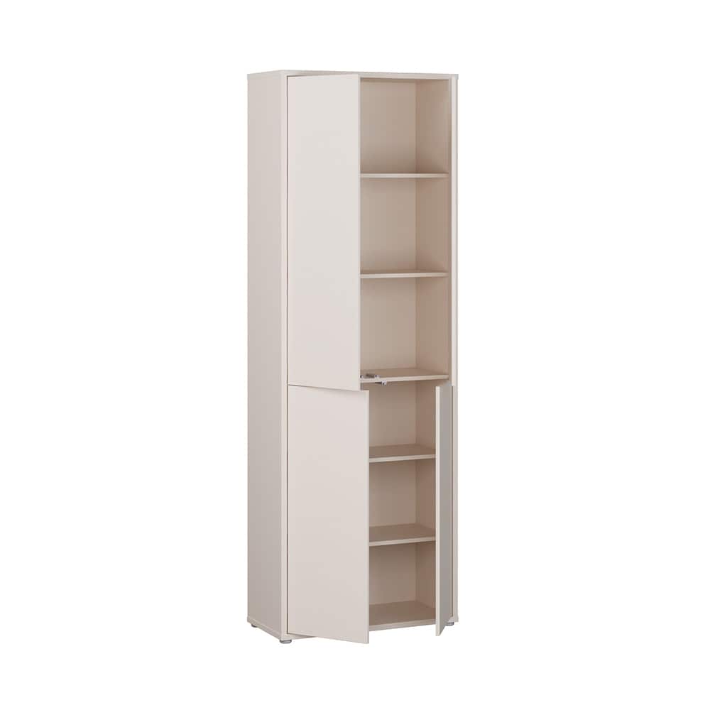 ALICE SPRINGS garderobeskap gjør det enkelt å organisere ikke bare klær, men også hjemmetekstiler, rengjøringsutstyr og andre husholdningsartikler. De romslige rommene gir mulighet til å oppbevare ting separat og holde alt ryddig. Skap med fire dører med push-to-open-funksjon. Inneholder totalt 5 hyller ca. 15 mm tykke, maksimal belastning på ca. 15 kg.