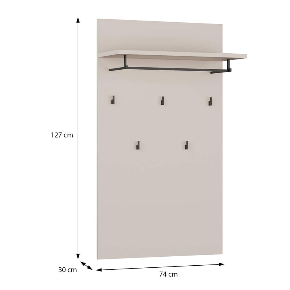 Fullfør entré-veggen med plass til jakker med ALICE SPRINGS veggpanel. Panelet har fem kroker og en liten metallstang for kleshengere, perfekt for å henge opp klær. I tillegg har det en topphylle for småtilbehør.