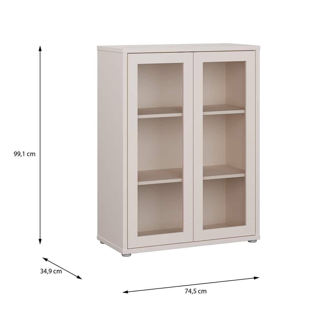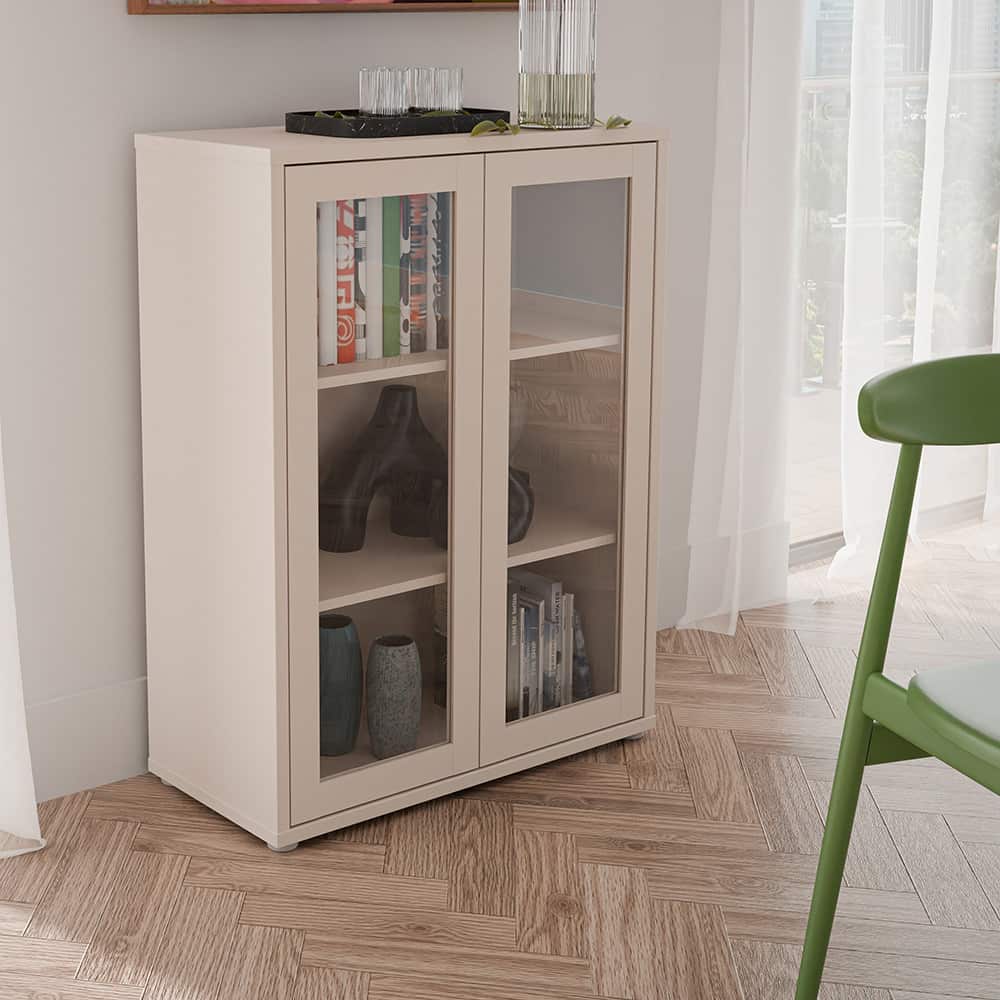 I det lave ALICE SPRINGS vitrineskapet kan du vise frem dekorasjoner, servise og andre gjenstander som fortjener oppmerksomhet. Gjenstander plassert på toppen kommer tydelig frem og bidrar til helhetsinntrykket. Innvendig finnes det tre romslige hyller for oppbevaring av ting i ulike størrelser.