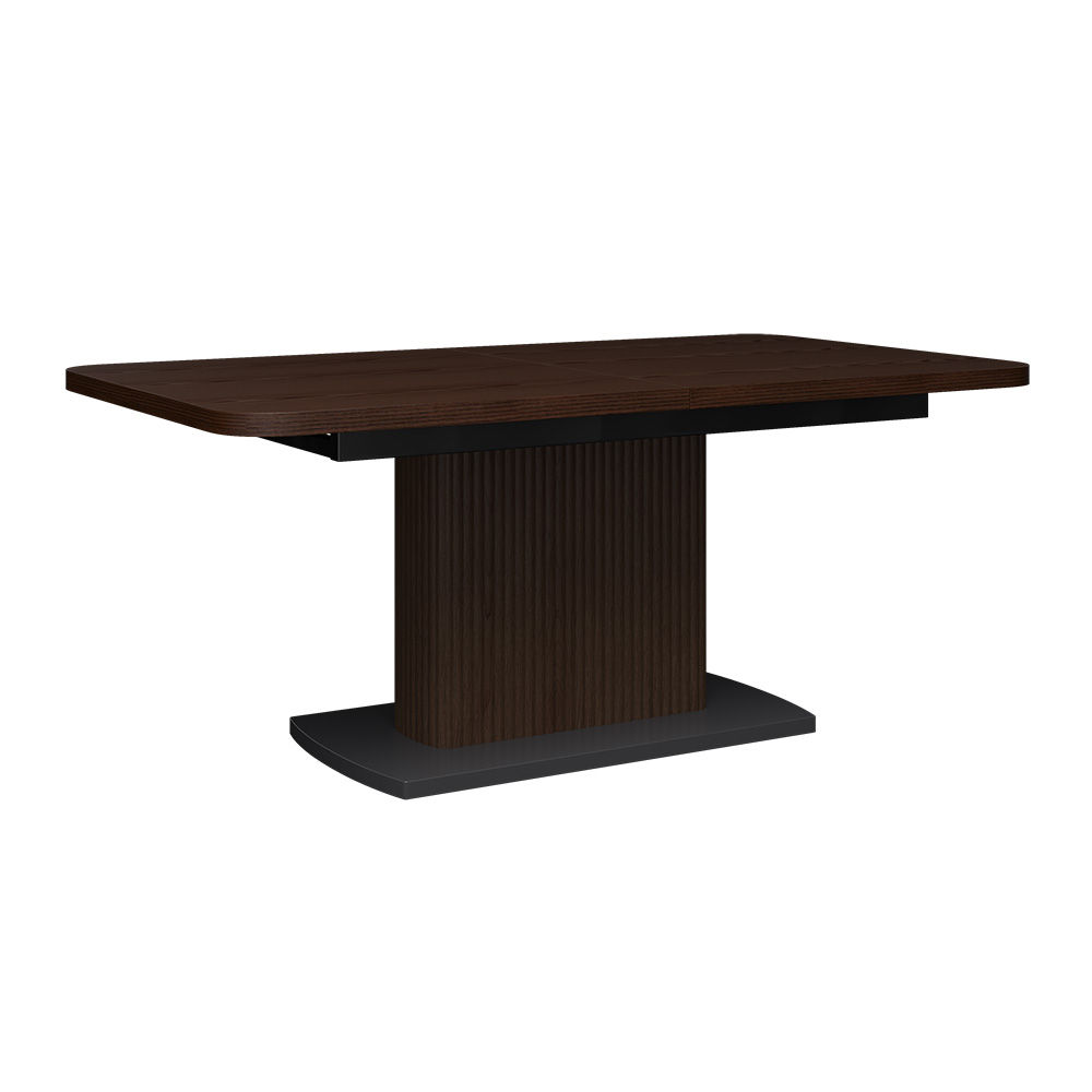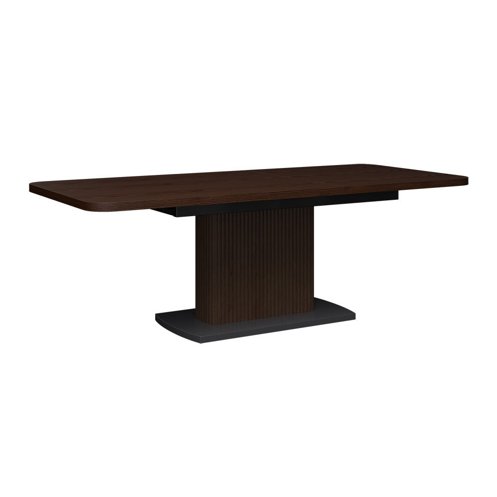 Det stabile søyleunderstellet i pulverlakkert stål sørger for god stabilitet, mens den finerte treoverflaten i svart tilfører et eksklusivt preg. Bordet leveres umontert, men er enkelt å montere og raskt klart til bruk. Amado kombinerer slitesterke materialer, fleksibel uttrekksfunksjon og tidløst design, og er et perfekt valg for moderne stuer og spisestuer.