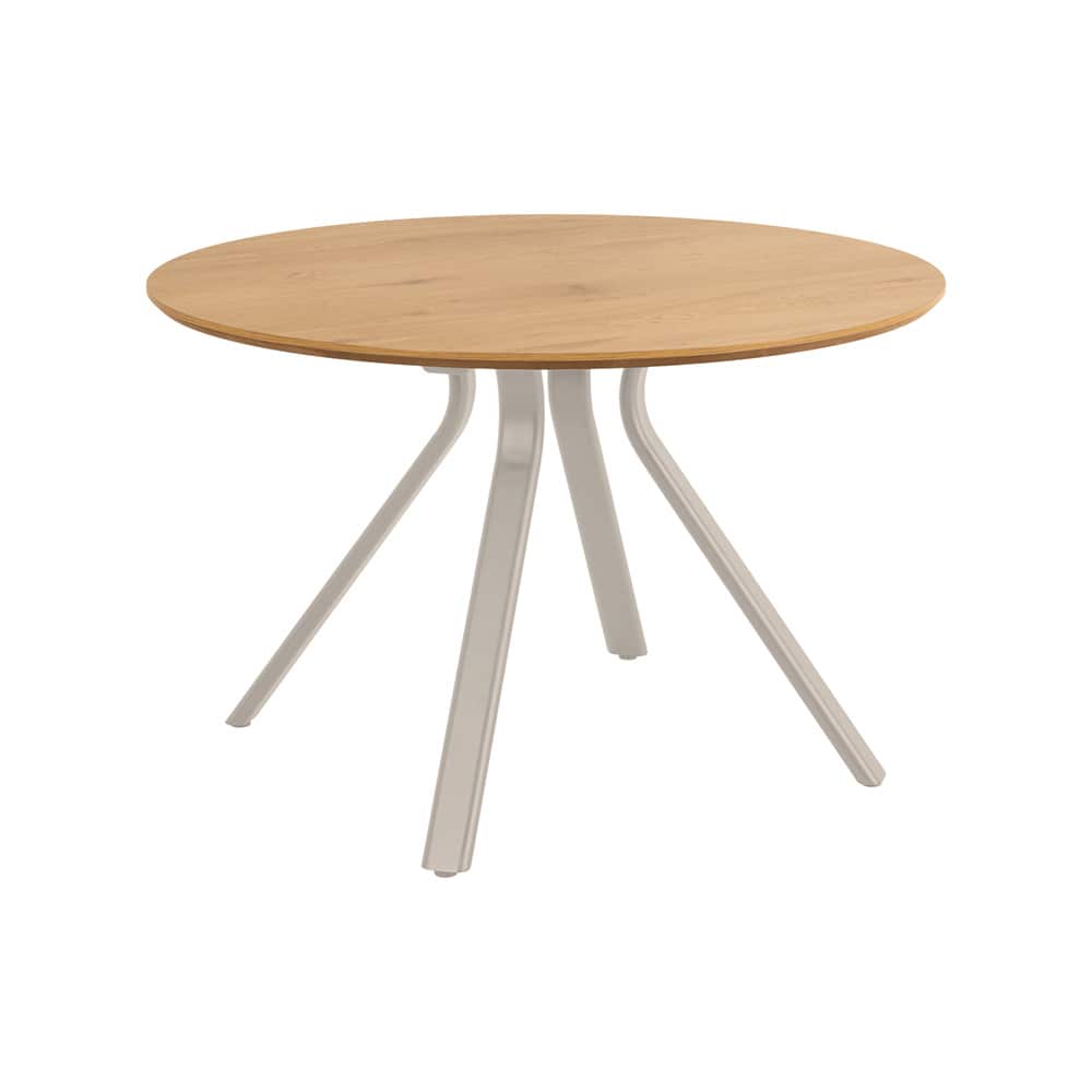 Bristol rundt spisebord, plate i matt vill eik grov melamin, understell i grå grov pulverlakkert stål, Ø120 x 75 cm