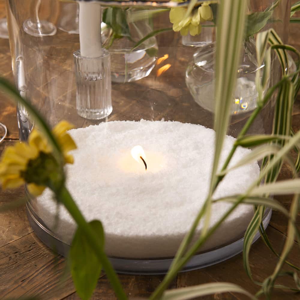 Plasser sanden i en ildfast beholder eller på en flammefri overflate. Vi anbefaler en beholder med minst Ø 70 mm. Sett veken midt i sanden, slik at den stikker ca. 1 cm opp over sanden. Hvis du bruker flere vekker, bør det være minst 5 cm mellom hver veke.