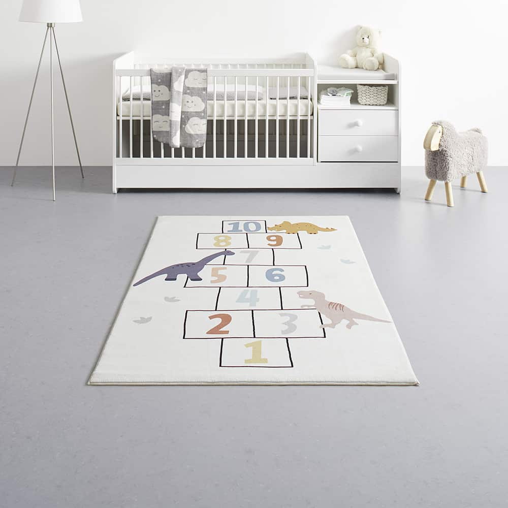 Den morsomme barneteppe-Dino er et ekte blikkfang for små dyreelskere og flotte lekøyeblikk. Den er også ideell for rom med gulvvarme. Som en lettstelt og vaskbar hverdagshelt er teppet lett å rengjøre og forblir pålitelig vakkert selv under daglig lek.