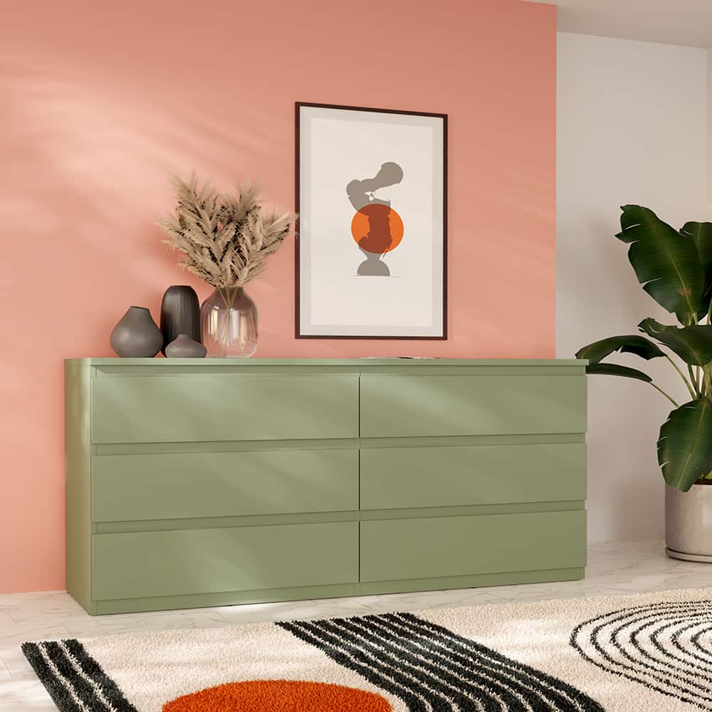 Kommode 6 skuffer sage grønn