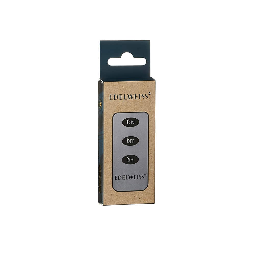 En fjernkontroll som passer til alle Edelweiss LED-lysene. Med denne kan du skru av og på lysene og sette på 6-timers timer.
