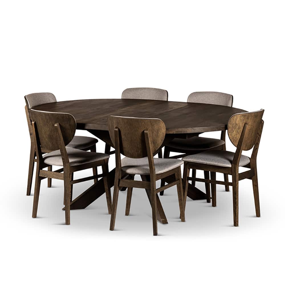 Hemse spisebord i røykoljet eik med rund bordplate og solid kryssunderstell som gir et moderne og rustikt uttrykk. Bordet kan utvides med ileggsplate ved behov for ekstra plass.