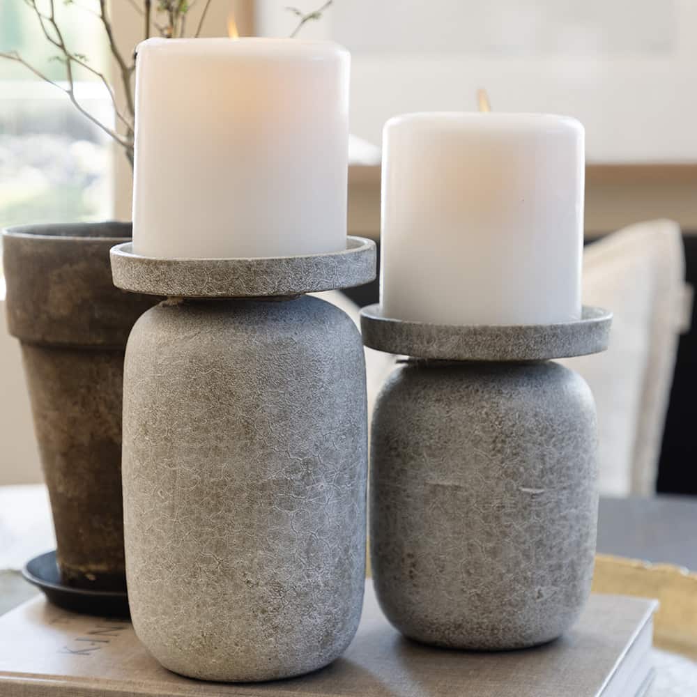 Rustikk kubbelysestake fra Lama i metall – tilgjengelig to størrelser. Den stilrene metallutførelsen gir et tidløst uttrykk, og den passer ypperlig sammen med boller lysestaker samme serie for en komplett harmonisk dekorasjon. Produktdetaljer: Materiale: Aluminium Størrelse: Dia10x H18 Fås også størrelse H15 Finnes tilhørende lysestake bolle Rengjøres fuktig klut Kubbelysestaken er del av sin kolleksjon