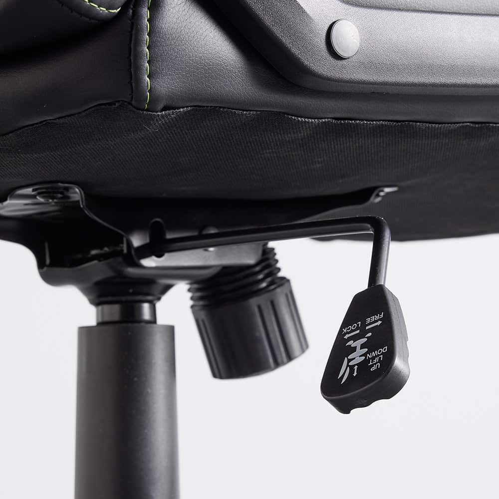 Med en maksimal lastekapasitet på ca. 140 kg og et sete på 46 cm i bredden, 45-54 cm i høyden og 49 cm i dybden, sikrer denne stolen komfortabel sitting. Den grønne og svarte ryggstøtten med kontrastsømmer gir stolen et moderne preg.
