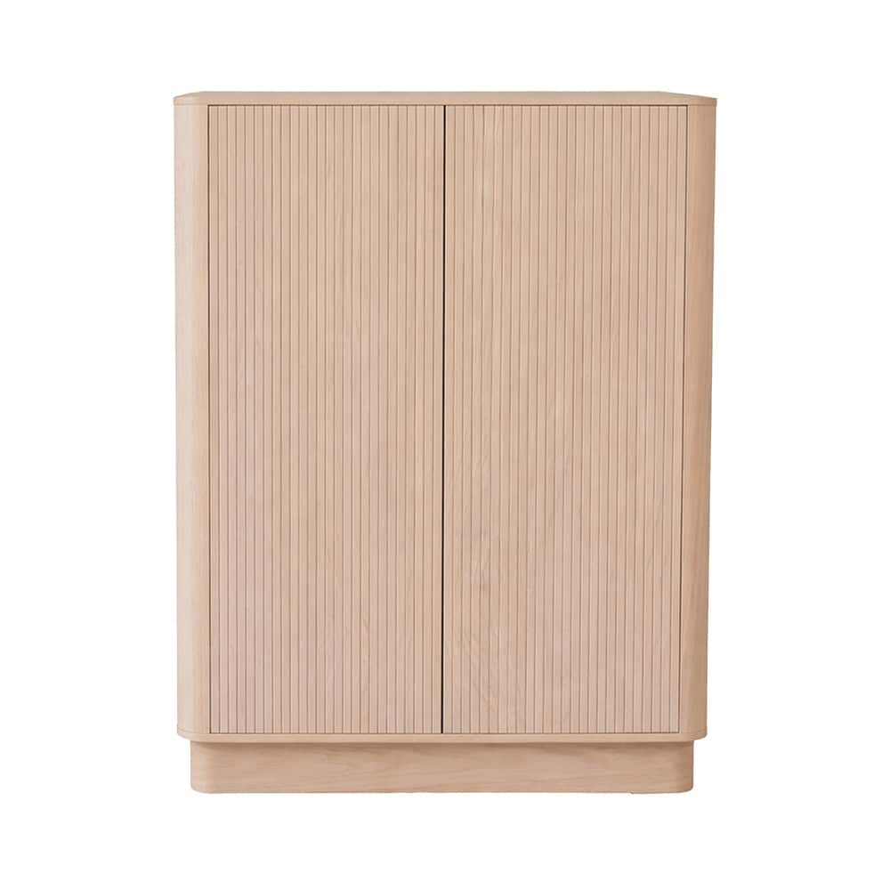 Elegant skjenk i moderne, nordisk stil med rene linjer og varmt trepreg som gir rommet et rolig og eksklusivt uttrykk. Møbelet kombinerer stilrent design med praktisk oppbevaring bak dører og i skuffer, perfekt for servise, duker eller annet du vil ha ryddig bort, men lett tilgjengelig. Passer like godt i stue som spisestue eller gang, og gir et tidløst preg som varer i mange år.