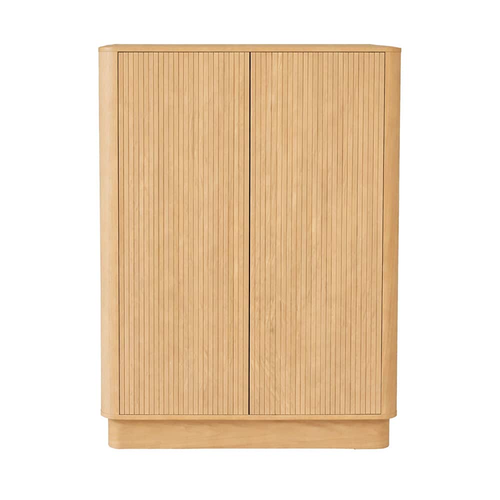 Elegant skjenk i moderne, nordisk stil med rene linjer og varmt trepreg som gir rommet et rolig og eksklusivt uttrykk. Møbelet kombinerer stilrent design med praktisk oppbevaring bak dører og i skuffer, perfekt for servise, duker eller annet du vil ha ryddig bort, men lett tilgjengelig. Passer like godt i stue som spisestue eller gang, og gir et tidløst preg som varer i mange år.