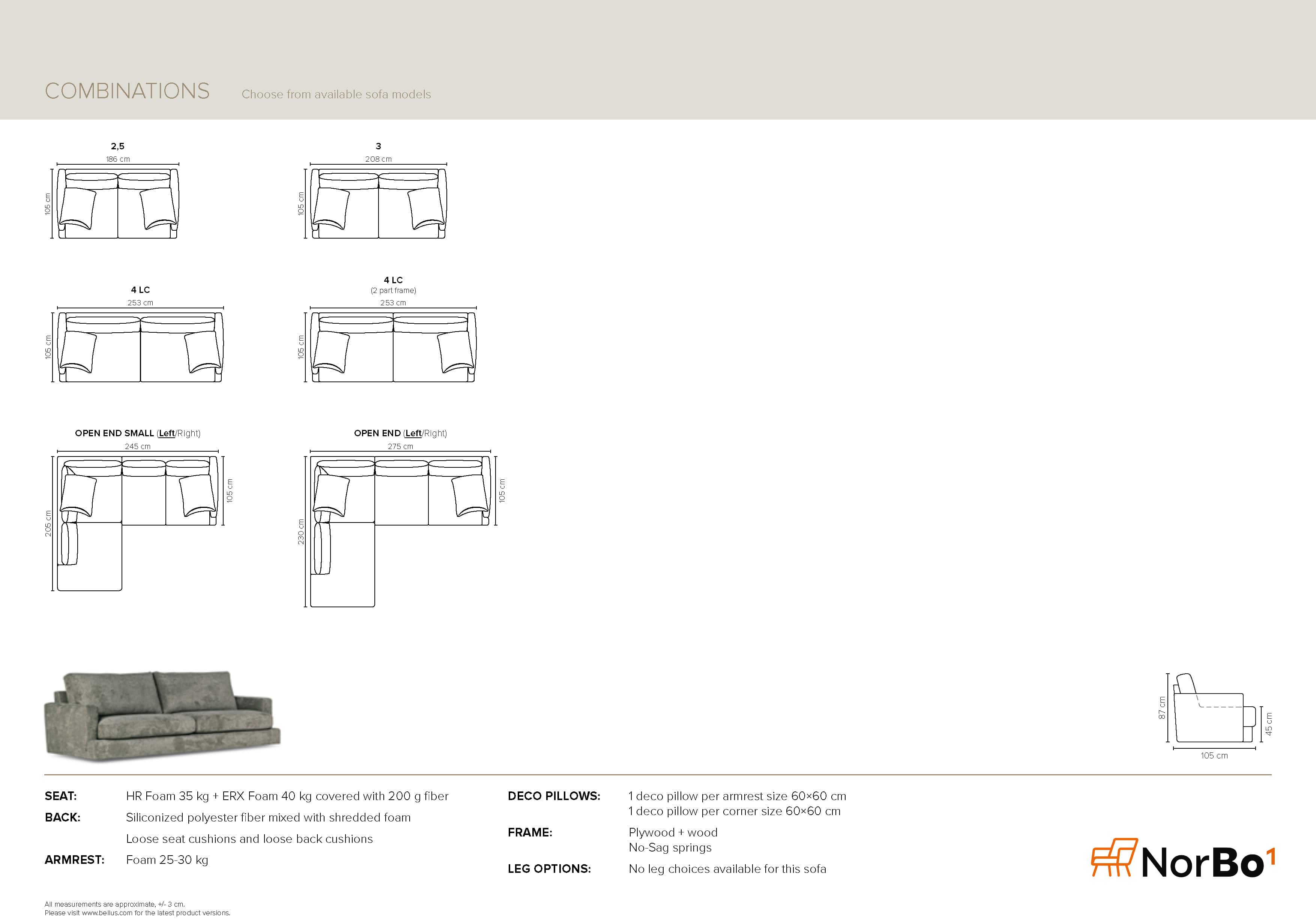 Komfortabel og innbydende sofa med myke puter og et moderne, stilrent design. De romslige sitteputene gir god støtte og høy sittekomfort, mens de løse ryggputene skaper et avslappet og lunt uttrykk som passer godt i de fleste stuer. Sitteputene består av HR-skum 35 kg og ERX-skum 40 kg, dekket med 200 g fiber SETE: