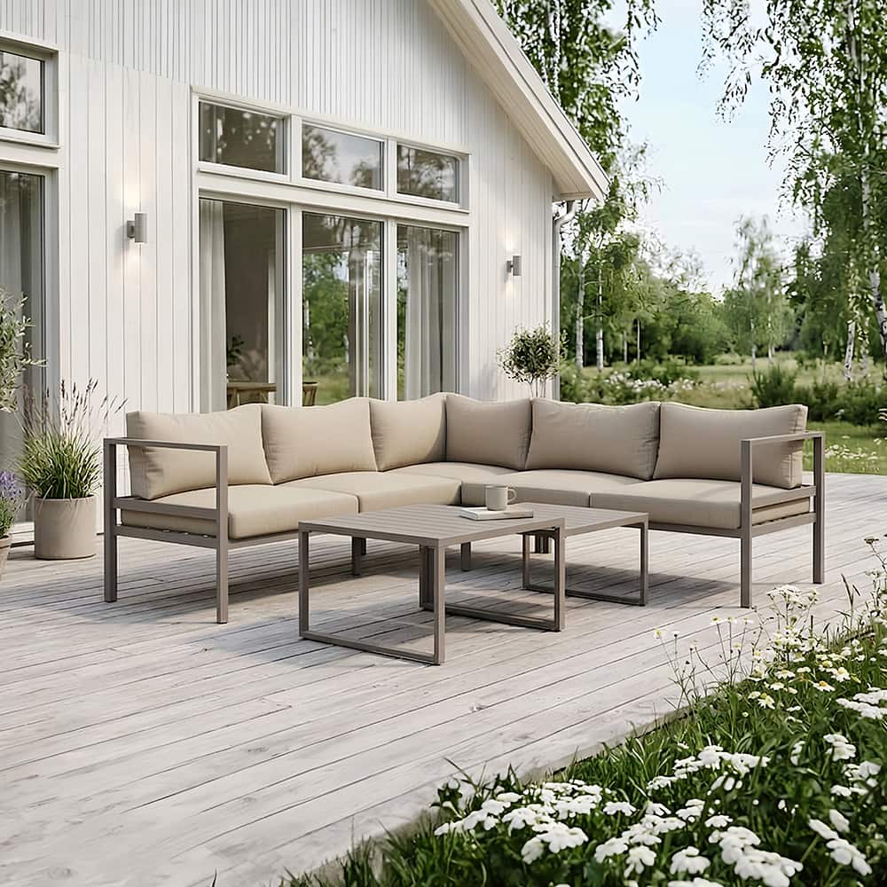 Oslo hjørnesofa i khaki aluminium og beige puter