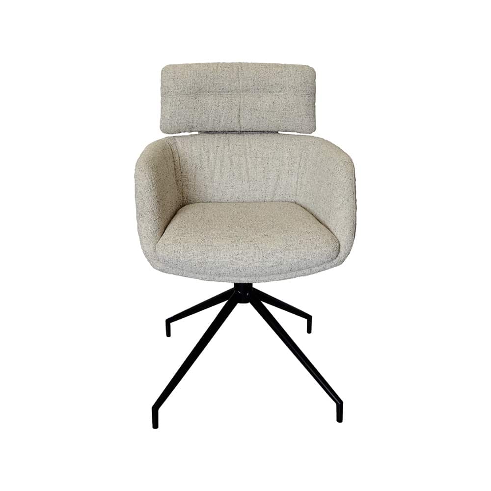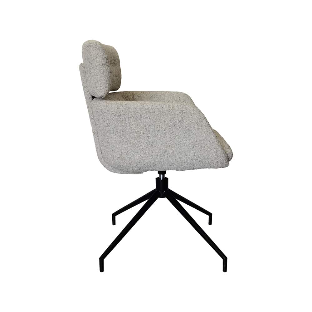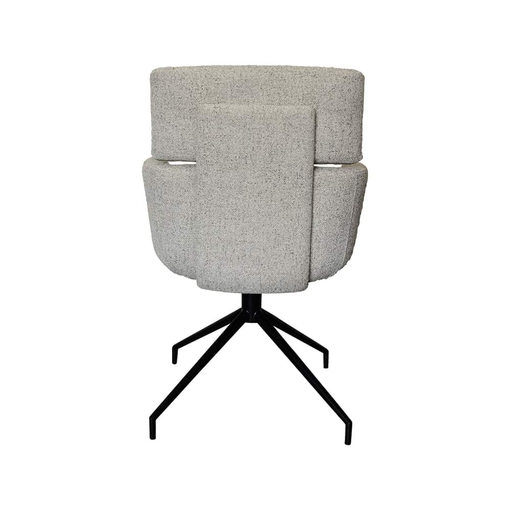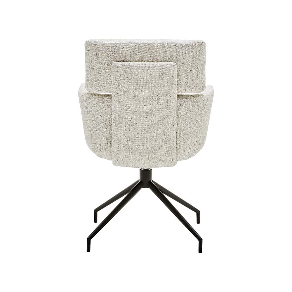 Stilfull og komfortabel Spisestue stol med armstøtte, med gyngefunksjon og 360° swing samt automatisk retur funksjon som gir god bevegelsesfrihet og enkel justering. Spisestuestolen er trukket i vevd tekstil og har solid metallramme, perfekt som rundt spisebordet for sosialt samvær.