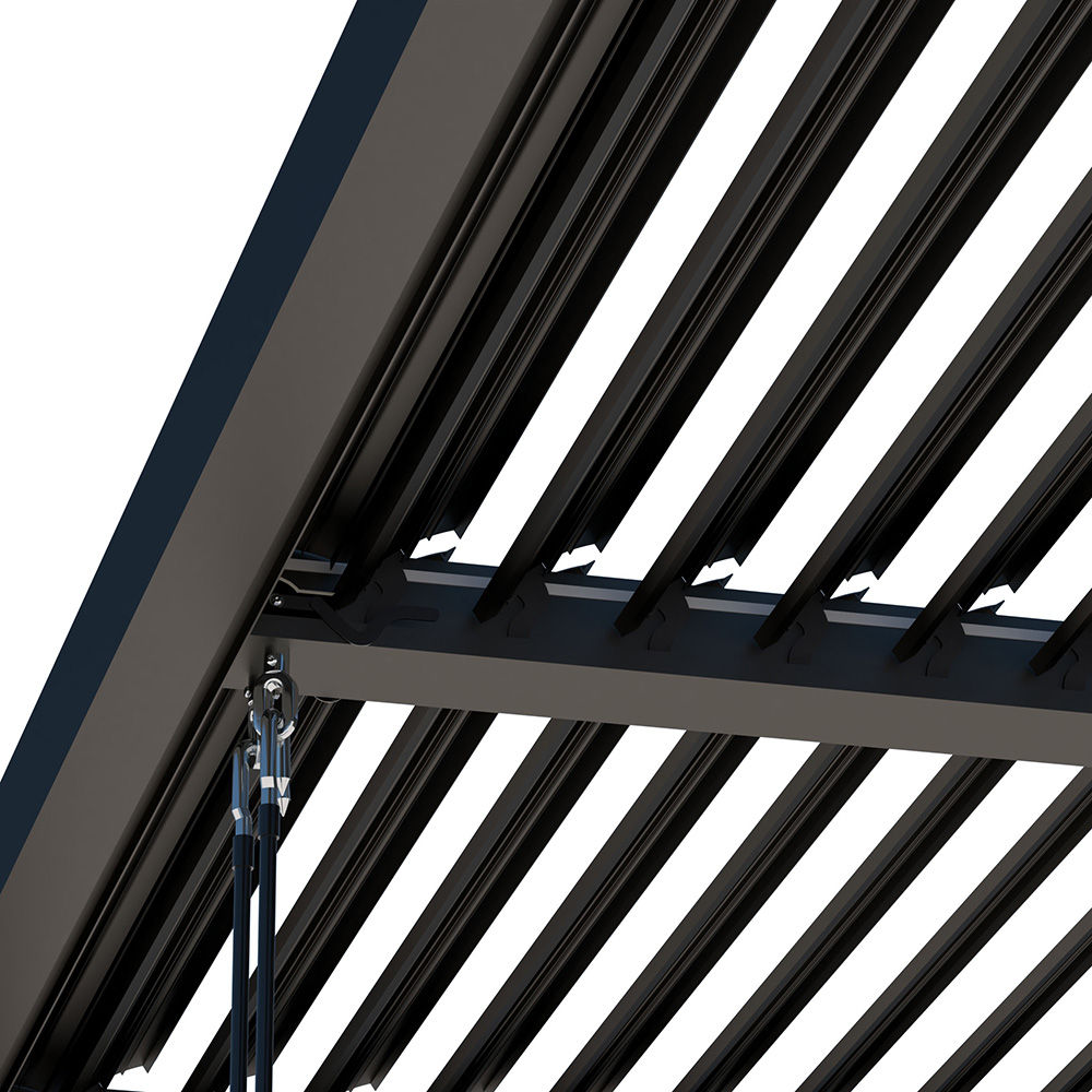 Vedlikeholdsvennlig, kan kombineres med sidevegger, pulverlakkert aluminium, justerbare lameller, korrosjonsbestandig