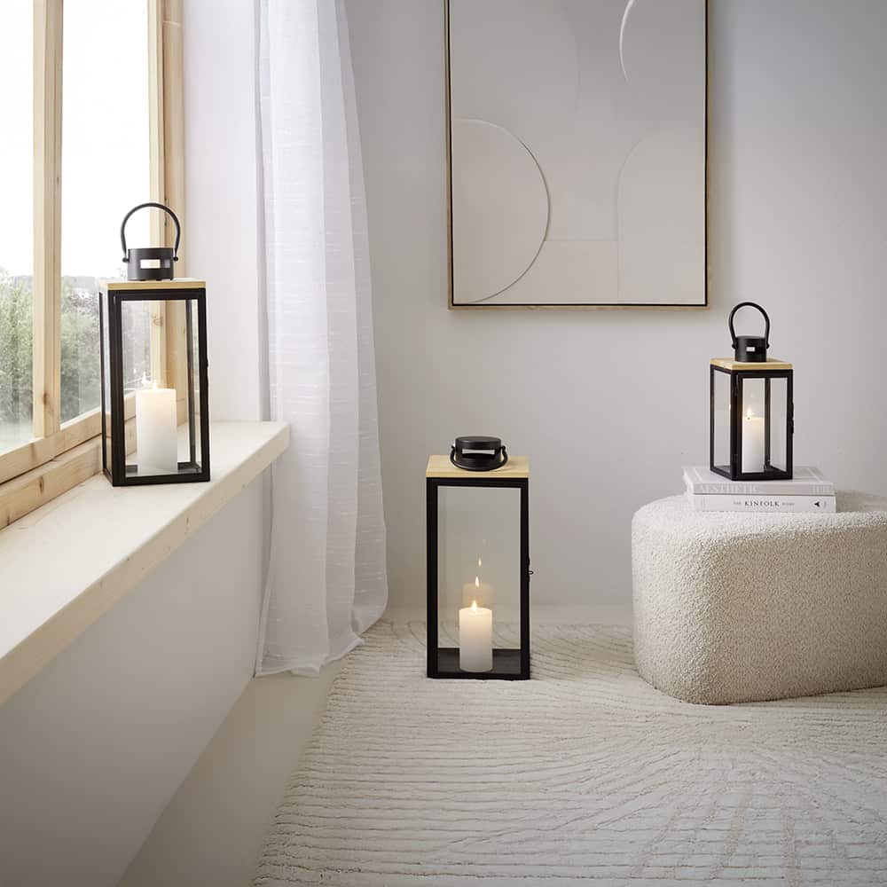 Oppdag den elegante, firkantede lykten i tidløst svart! Med målene 13/29/14 cm er den den ideelle størrelsen for å lyse opp interiøret ditt med stil. Denne lykten er spesielt designet for bruk med kubbelys, noe som gir deg friheten til å plassere favorittlyset ditt i den og skape en varm, koselig atmosfære.