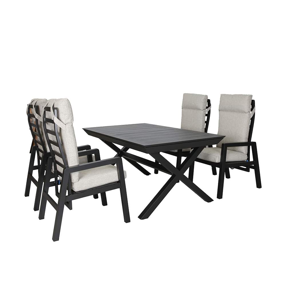 Praktisk og stilrent spisebord til uteplassen. Bordet har uttrekksfunksjon som gjør det enkelt å forlenge bordet når du får gjester. Solid konstruksjon i aluminium som er lett, rustfri og godt egnet for nordiske værforhold – perfekt til terrasse eller hage.
