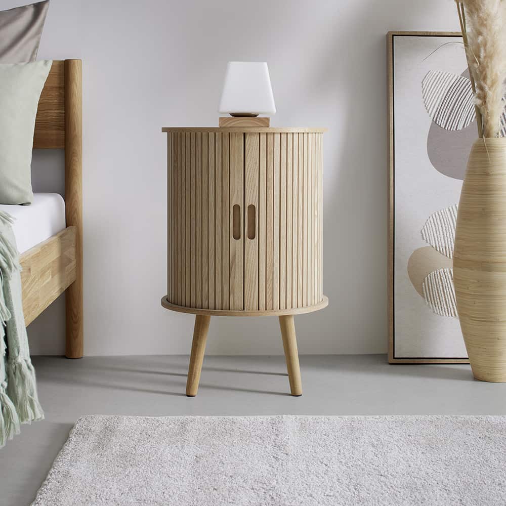 Med SKANDY nattbordet flytter nordisk letthet inn i hjemmet ditt. Samspillet mellom solide furuføtter og en kropp i fin askfiner gjør at de ser vennlige, moderne og likevel tidløse ut. Et møbel som uanstrengt kombinerer design og funksjon.