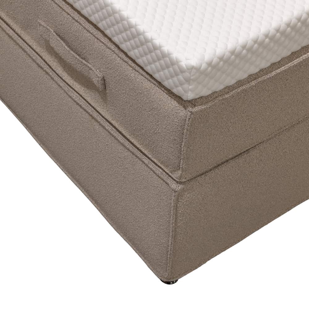 pocketfjærer med smart teknologi som gir stabil og presis støtte til hele kroppen. Den faste oppbygningen sørger for at ryggraden holdes i en naturlig og ergonomisk riktig stilling gjennom natten. Samtidig sørger fjærsystemet for god ventilasjon i madrassen. Dette er vår eneste seng som leveres med en hel madrass som standard. Den er ikke delt i to madrasser på bredden, slik mange andre senger er. Her kan du derfor ligge midt i sengen med jevn og god komfort over hele flaten.